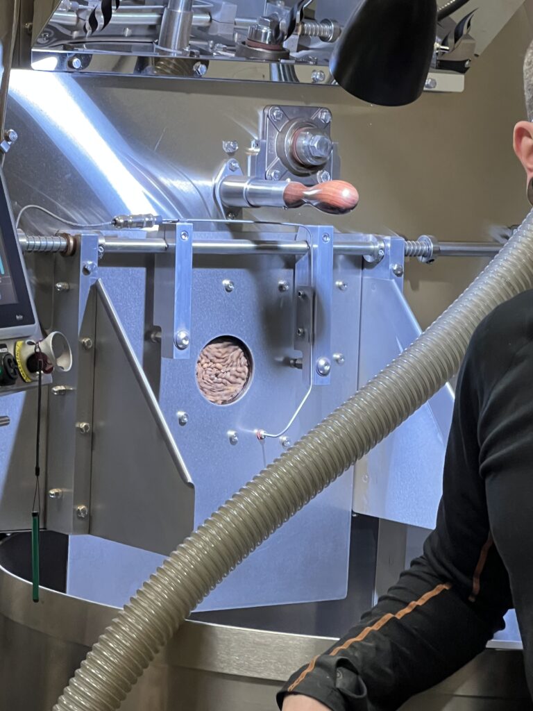 När kaffet sedan ska vidareförädlas, vilket alltså sker här på rosteriet, avgörs vilken grad av rostning som passar bönorna från de olika världsdelarna samt vilken smakbild man vill åstadkomma. Den här småskaliga produktionen skiljer sig från de industriella producenternas mera storskaliga och automatiserade metoder till en mera känslig och varierad hantverksmässig hantering i tid och temperatur av själva rostningen.