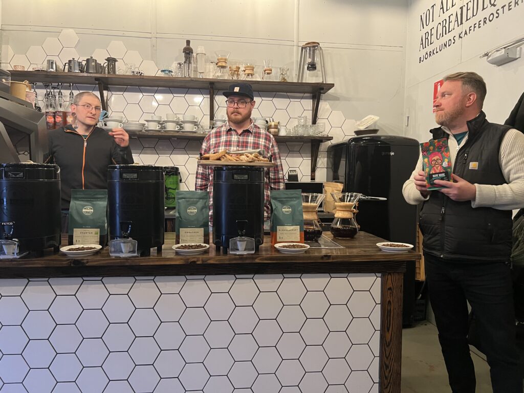 Den 12 mars 2026 samlades ett gäng SlowFoodmedlemmar hos Björklunds kafferosteri i Västerås. Johan Björklund och medarbetare tog emot oss med stor entusiasmen och berättade om hur de startade företaget för 13 år sedan. Som så många andra små och lokala entreprenörer startade det hela med ett mycket brinnande intresse som först skulle vara en hobbyverksamhet men som under tankeprocessens gång ändå blev en kommersiell satsning i form av ett företag i väldigt liten skala.