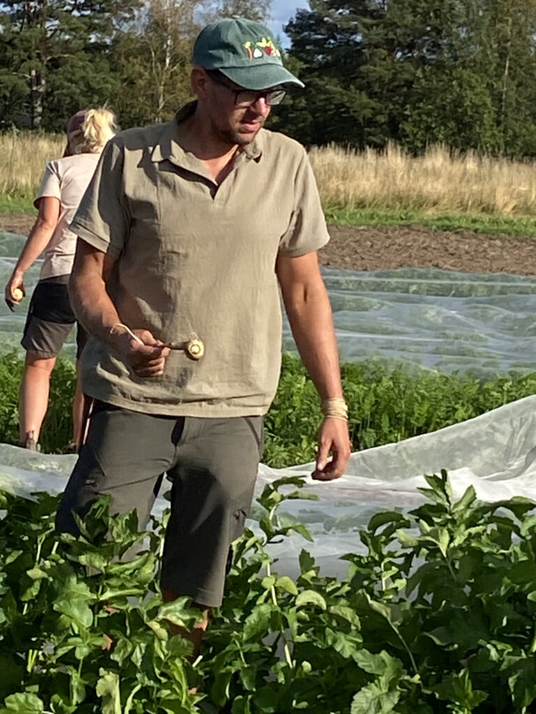 Bättre kan det knappast bli, måndagen den 18 augusti träffades vi för 10 gången på Hebo Trädgård för att skörda härliga grönsaker. Tror det var rekord, vi var 20 glada SlowFoodmedlemmar som träffades hos Ted, Sara och Leon denna solskenskväll. Grödorna stod i full prakt och vi sa samstämmigt, vill ha, vill ha! Nu begränsar ju lagringsmöjligheterna de flesta av oss från att köpa allt vi vill ha, som tur är finns ju Ted och Sara på Bondens Egen marknad varje lördag ända fram till och med den 25 oktober. Låter bilderna här nedan tala för sig själva, en jättehärlig upptakt till föreningens aktiviteter under hösten.