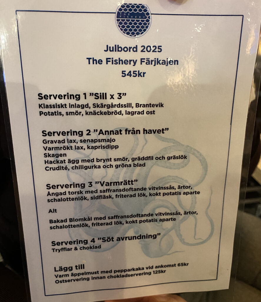 24 glada medlemmar i Slow Food Västerås samlades denna dag 2025 på den för året nyöppnade restaurangen The Fishery på Elbakajen i Västerås för att avnjuta en rakt igenom sjö- och havsinspirerad julmiddag. Sedan ett par åt tillbaka har vi fokuserat Terra Madremiddagarna på att testa restauranger med olika internationella inriktingar. I år blev det alltså ett undantag när vi istället återgick till det svenska och skandinaviska kökets sjö- och havsmat.